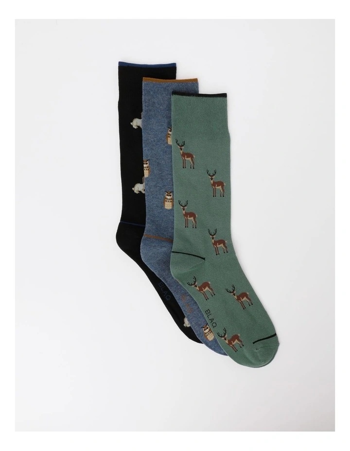 3 Pair Pack Patterned Crew Length Socks Woodland Designs In Assorted Colours