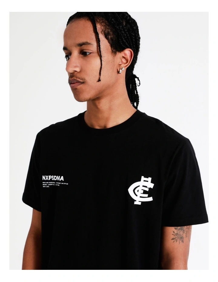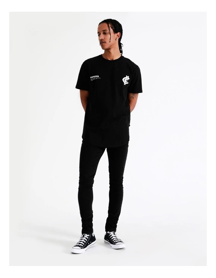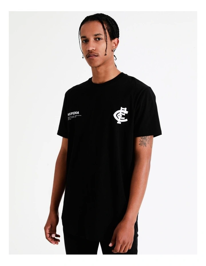 A look that the NXP brand is known for, this tee gives a longer body silhouette, with a curved hem front and back. The black on black design gives a contemporary take on supporter apparel.Â