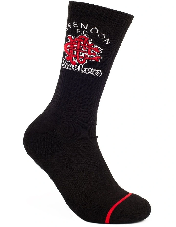 Officially licensed by the AFL, the 2 pack Sneaker Sock is the ultimate fusion sock, mixing street design cues with technical sport sock function in your favourite Essendon Bombers team colours. Designed to be worn everyday with sneakers this sock is engineered to fit the contours of your foot with extra padding in the heel and forefoot. Made from a careful blend of 68% cotton, 25% polyester and 7% elastane in a crew length fit. For best results warm machine wash to keep your team colours vibrant!