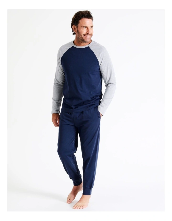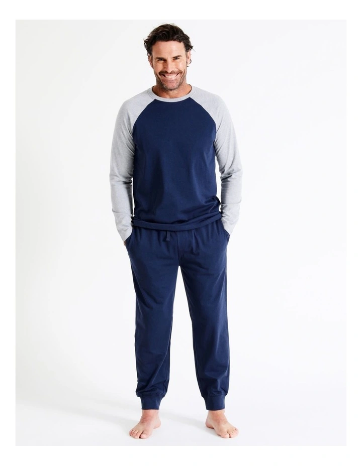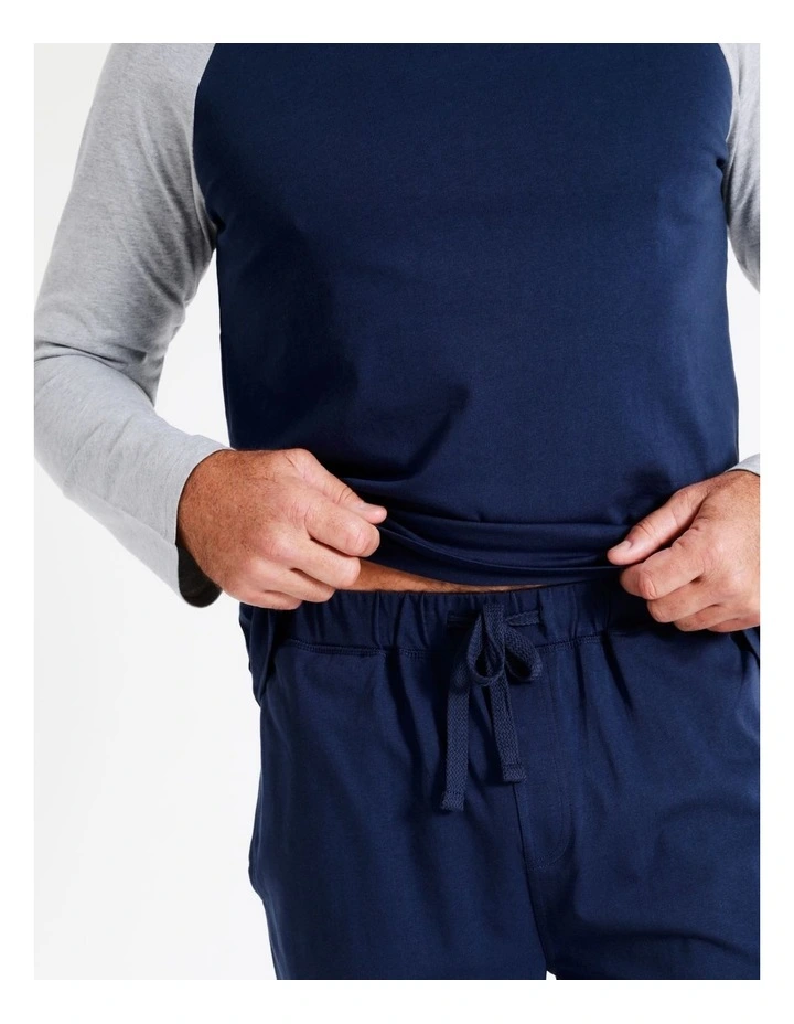 Reserve Essentials Long Sleeve Raglan Tee & Knit Jogger PJ Set in Navy