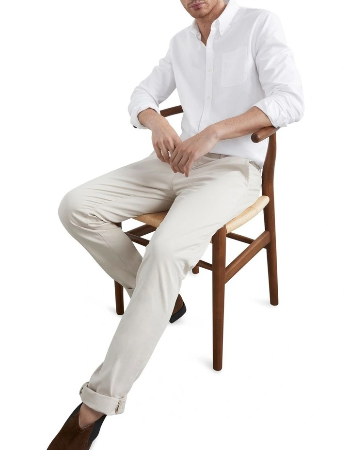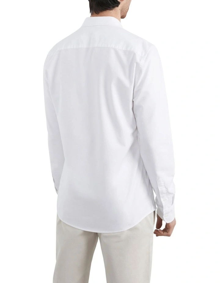 Add the Oxford Slim Fit Shirt to your wardrobe. Made from 100% cotton, this shirt has a slim fit, curved hemline, and single chest pocket. Wear with our slim chino pant and crew neck tee.Â