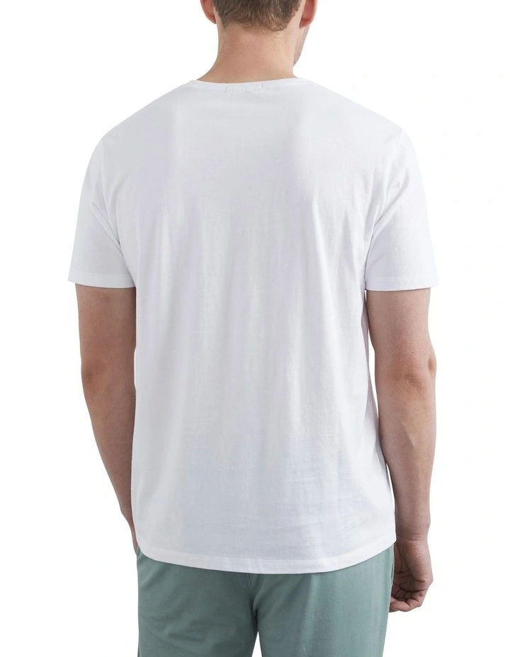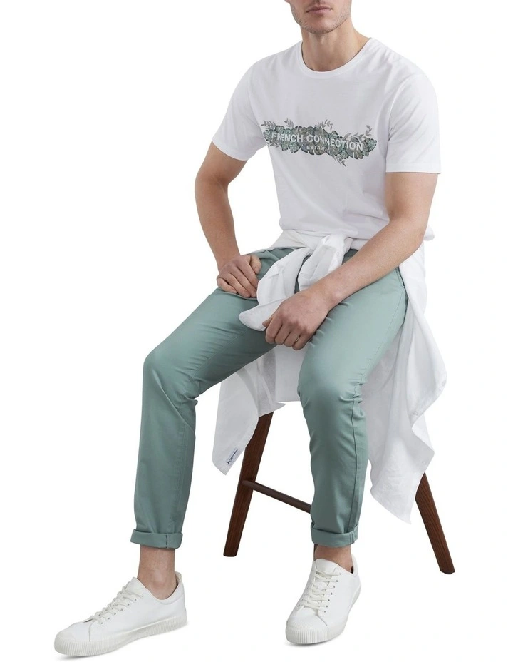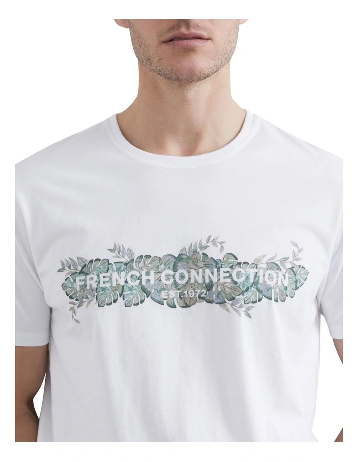 Get warm weather ready with our on-trend Tropical T-Shirt. Featuring a logo graphic combined with our seasonal tropical print, this tee features short sleeves, crew neck and regular fit. Style with our Linen Classic Fit Shirt and Hamish Canvas Sneaker. Our model is 188cm tall and wears a size M.