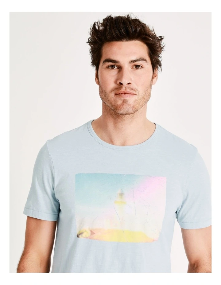 Maddox Lightstation Placement Print Short Sleeve Tee In Light Blue