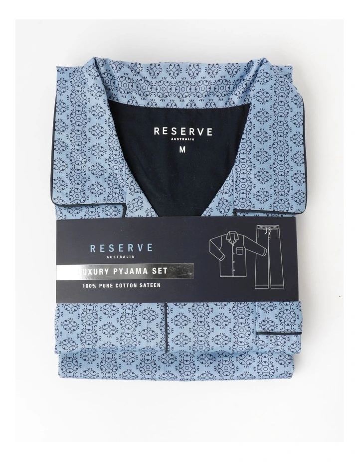 Reserve Long Sleeve Sateen Cotton PJ Set in Stripe Geo