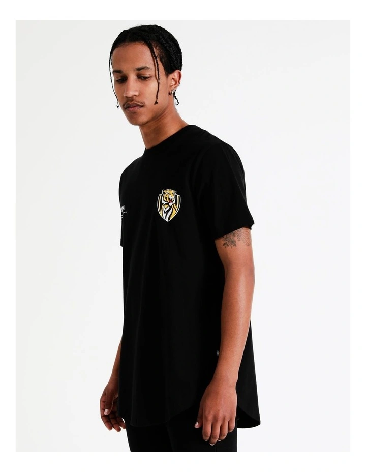 A look that the NXP brand is known for, this tee gives a longer body silhouette, with a curved hem front and back. The black on black design gives a contemporary take on supporter apparel.Â