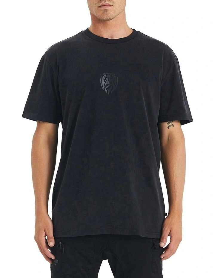 Switch up your game day look with the Richmond Tigers Relaxed T-Shirt in Mineral Black. As a part of Nena & Pasadena’s official AFL supporter apparel collection, this tee boasts an NXP chest logo, Richmond Tigers logo on the back, drop shoulder, classic straight hemline, and an effortless, casual fit.