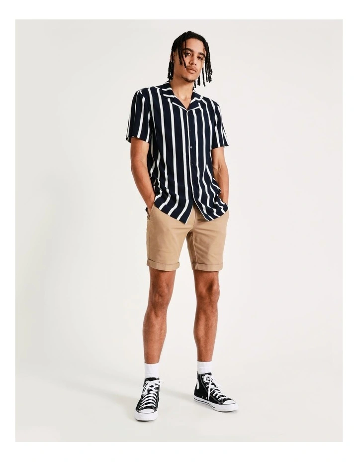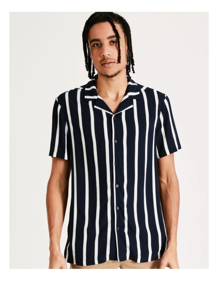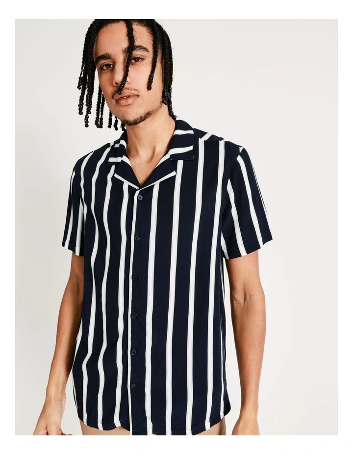 From festivals to casual Fridays, Kenji has you fitted. This stripe print is modern and can be easily paired with your favourite jeans. It sits in a regular fit and features a fold over collar.