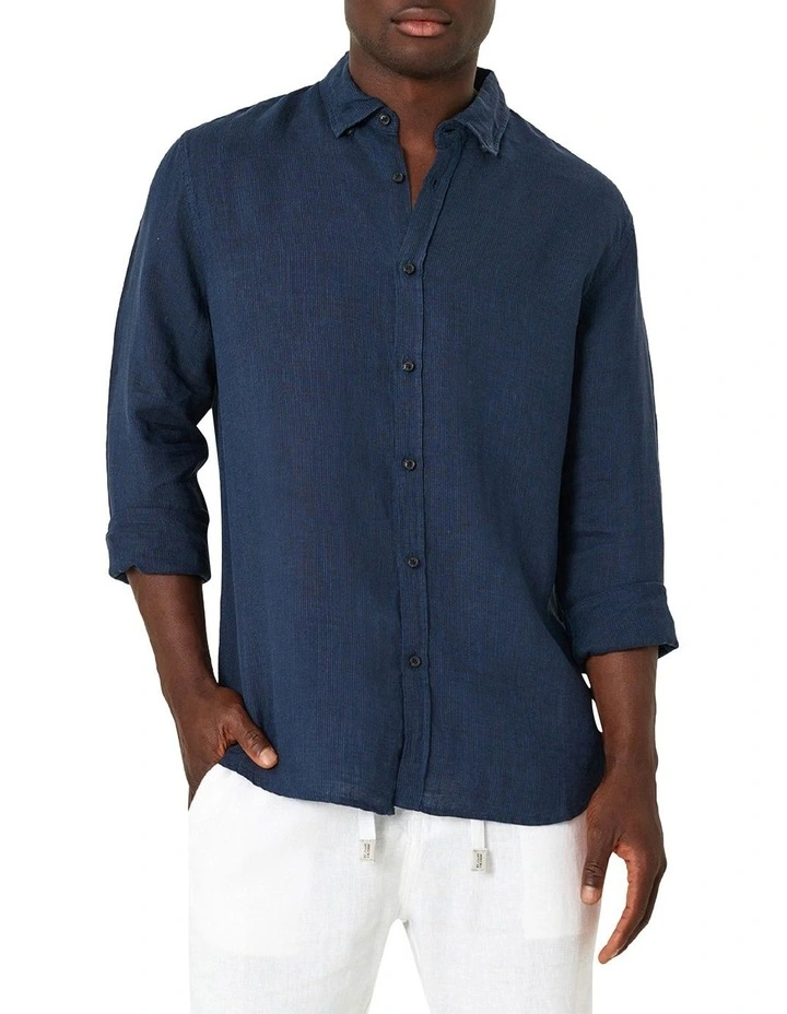 A classic narrow-striped button-up. With lightweight linen, the Rochefort Long Sleeve Shirt is a summer favourite. Throw on a pair of chinos for a polished summer ensemble.